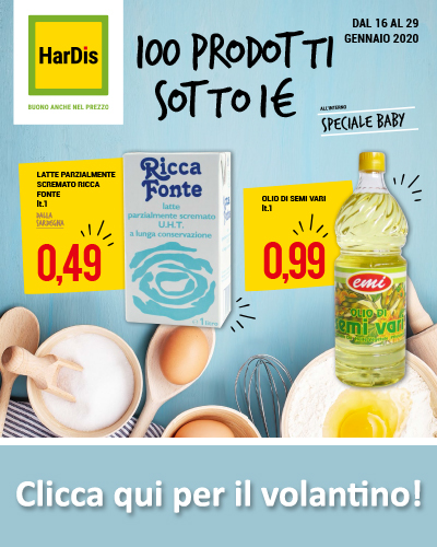 “100 PRODOTTI SOTTO 1€” valido dal 16 al 29 Gennaio CLICCA QUI per il volantino!